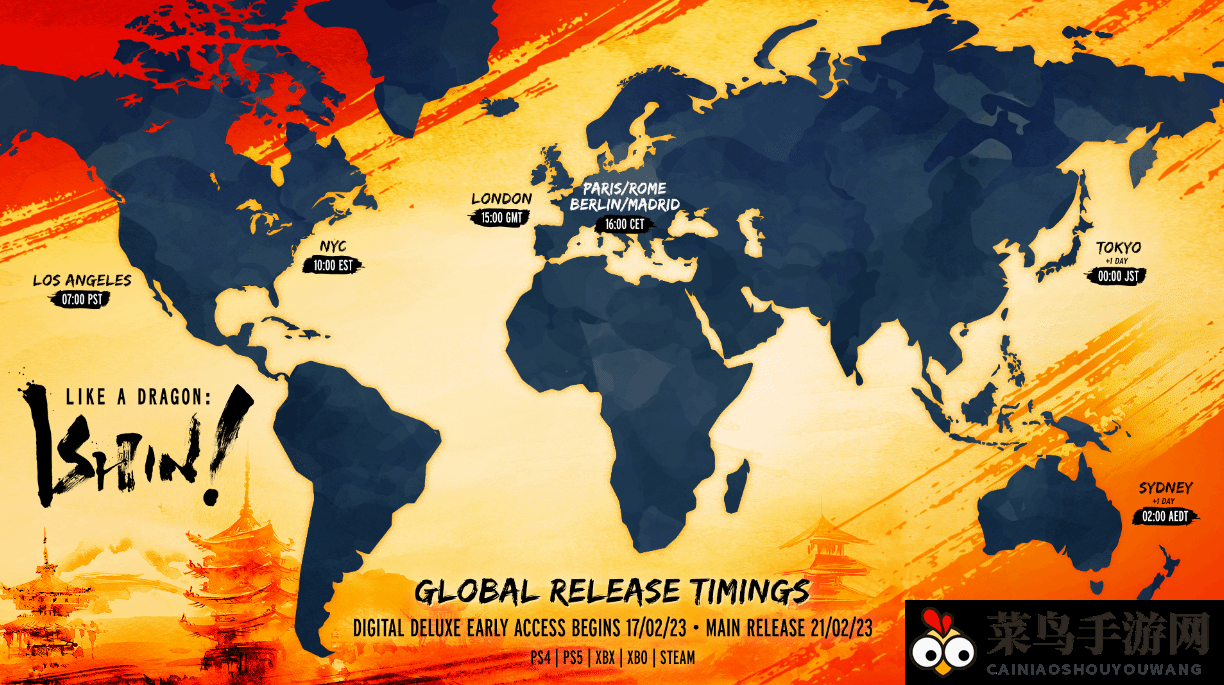 2月17日,官方正式公布了《如龙:维新 极》的全球解锁时间。预购数字豪华版的玩家可以抢先在今日23:00(北京时间)解锁,而正式版解锁时间为2月21日23:00。游戏支持跨平台游玩,覆盖PC、PlayStation 5、Xbox Series、PlayStation 4、Xbox One。