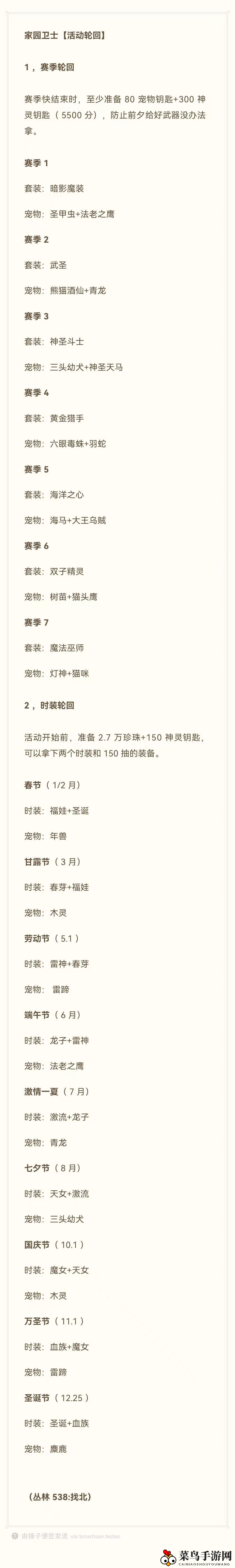 5周目开启赛季图后,可以购买赛季宠物碎片包。即使不花钱也没关系,完成赛季任务也会有徽章奖励。即使刷不动高阶赛场也没关系,很多任务都是收集性质的,前期每天刷3次初赛3图,其余体力刷英雄,收集材料即可。每周可以开启10个宠物箱子,获得金色徽章。灵魂祈祷任务不建议做,金钥匙还是留着后面150抽活动吧。远古宝箱建议多集几个一起开,不要单独开。特别是在遇到连续失败的情况(比如重铸属性不理想,打孔3孔怎么也上不去),这时候开箱子可能会有惊喜,甚至可能会得到极品装备。