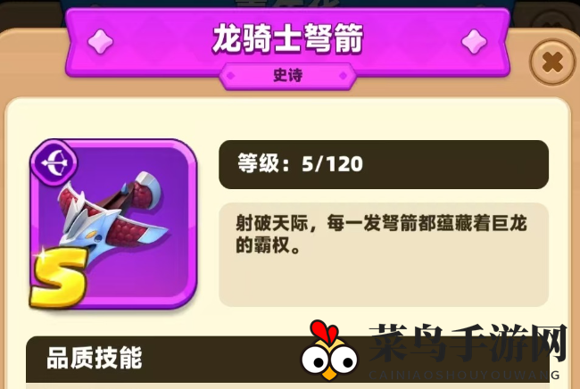 当您的嘉年华积分累积至750点,龙骑士弩箭将为您解锁,它是游戏中最为强大的武器之一。每次使用都能激发霸权之力,带来108点的攻击力提升,增加5%的攻击力,造成范围伤害,并提升200%的武器基础属性,同时额外增加10%的攻击力,让您的通关之路更加畅通无阻。