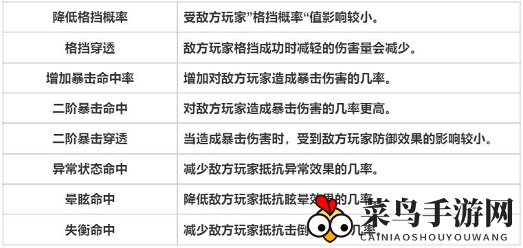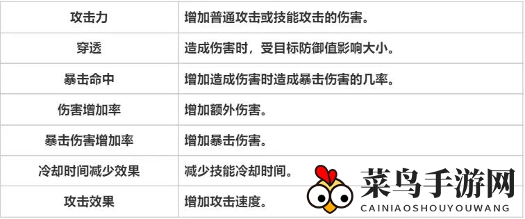 ※暴击伤害:一招制胜,伤害爆表的猛攻;