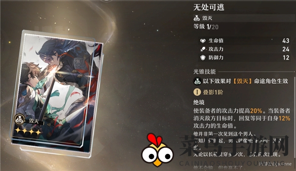 毁灭光锥提升攻击力,并在消灭敌人后回复自身生命值,但生存能力和输出提升有限。