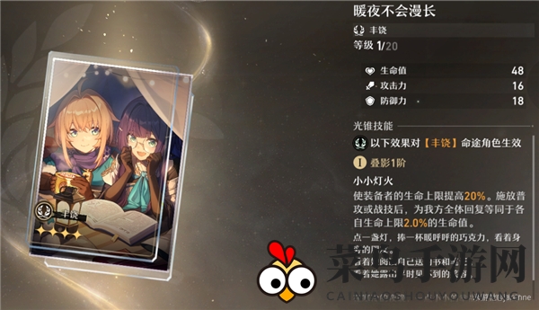 丰饶光锥生命力加成能提高依据自身生命值提供治疗的角色使用效率,但第二个额外回复生命值的被动效果有限。