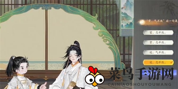 3、“贫,气不改”下句是什么?正确答案是:达,志不改。