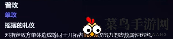 向指定敌方单体发起攻击,造成等同于开拓者100%攻击力的虚数伤害。