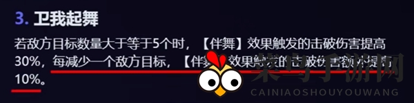 3、守护之舞:当敌方目标数量达到5个或以上时,【伴舞】效果触发的击破伤害提升30%,每减少一个敌方目标,击破伤害额外提升10%。