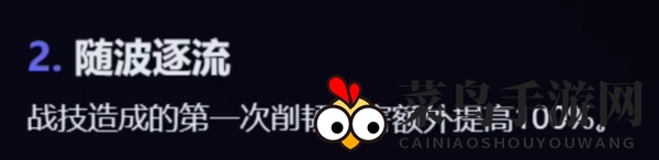 2、随波逐流:战斗技能造成的第一次削韧伤害提升100%。