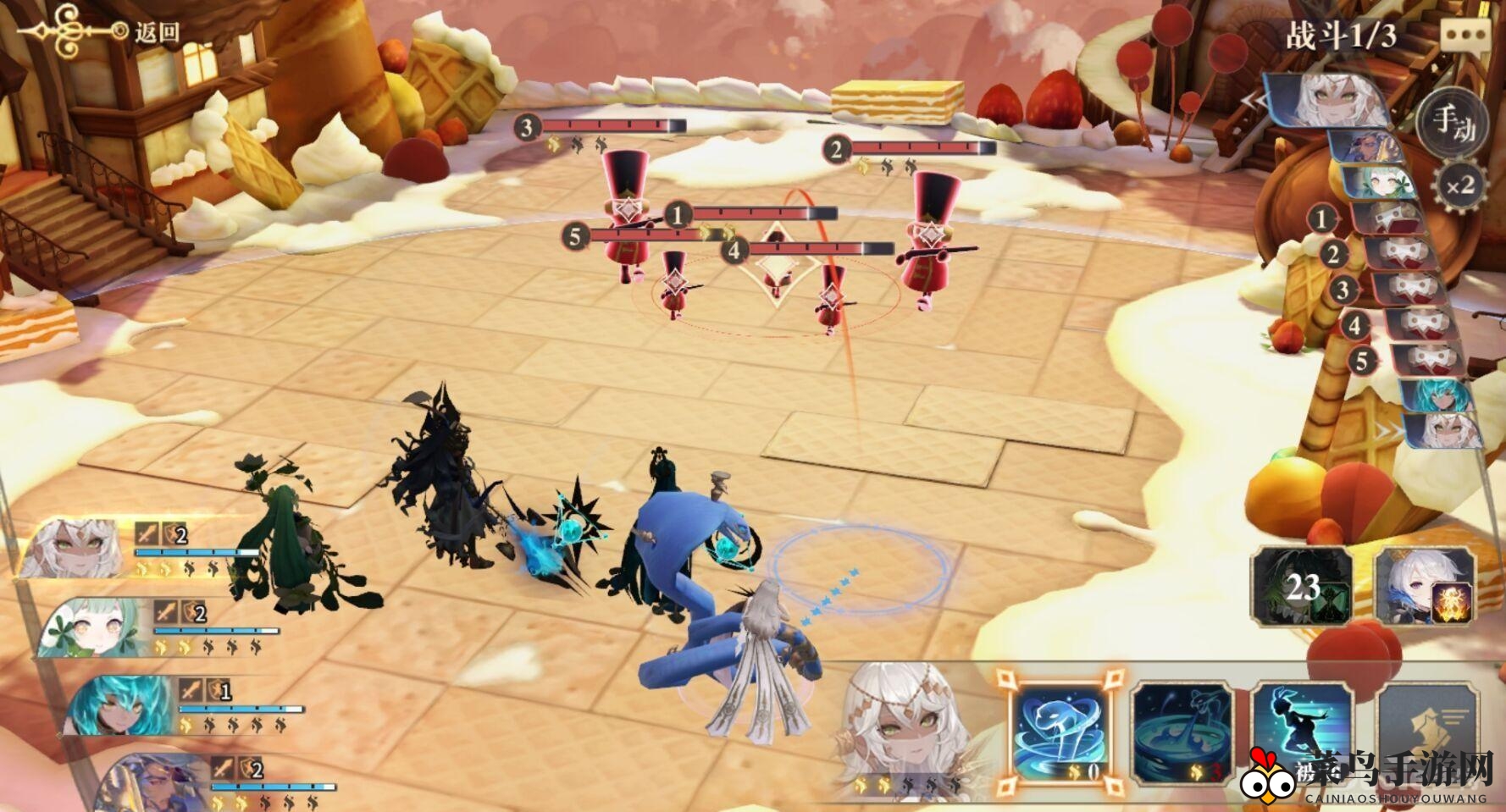 第二波四敌,实力与首波相当,但山鲁佐得可能受创,需先用白芷回血。