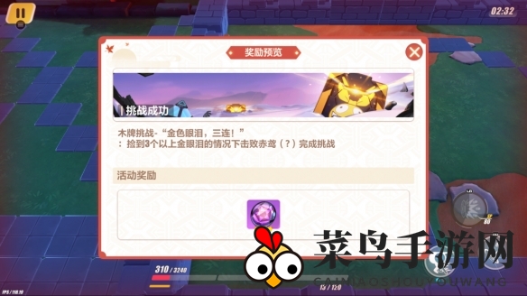 挑战目标:收集超过3枚金色眼泪,并战胜黑赤鸳。