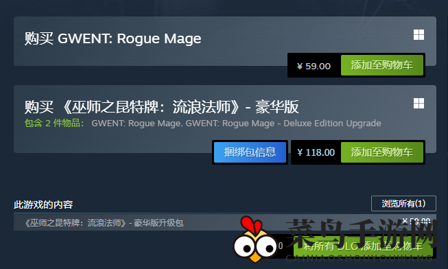 巫师之昆特牌流浪法师在Steam的标准版下载价格为59元,豪华版更是高达118元。