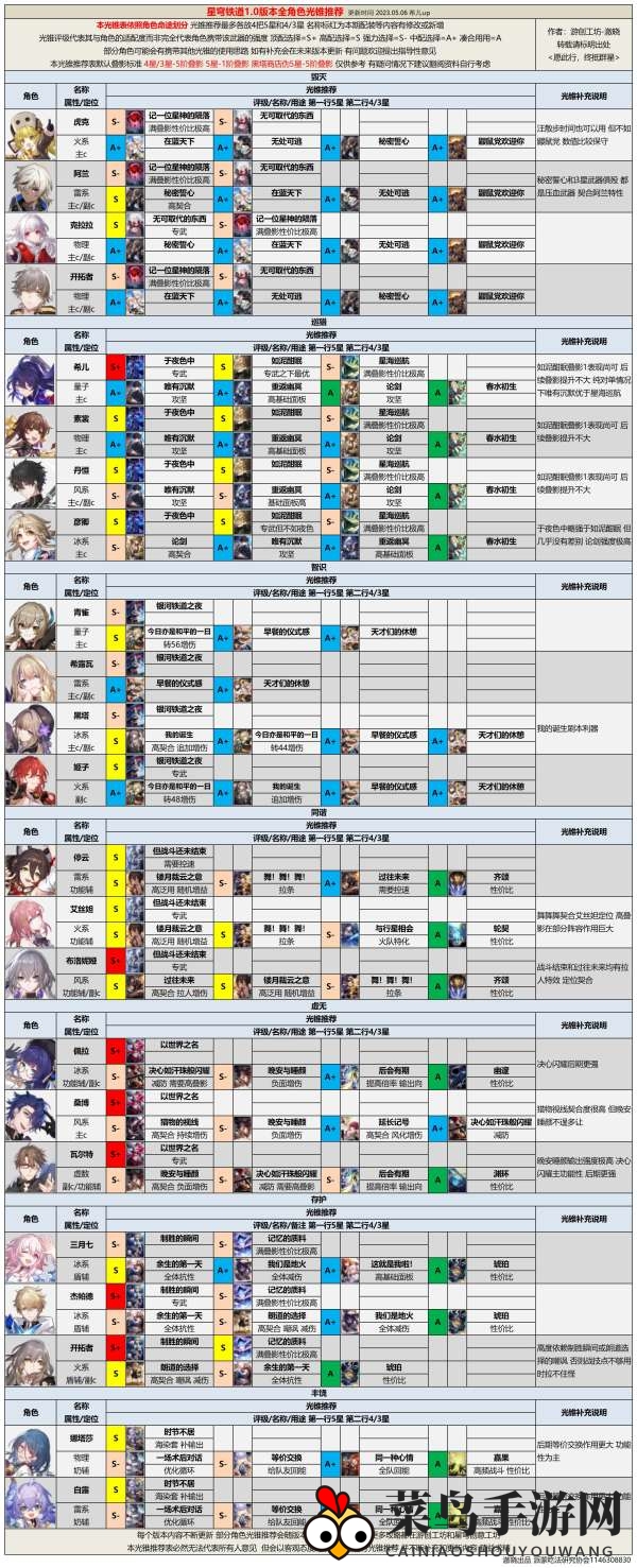 本期是开服后第一版全角色光锥攻略,未来将根据版本趋势、环境走向以及配队思路等方面不断更新完善。希望这篇攻略能受到大家的喜爱,并为玩家们提供帮助。
