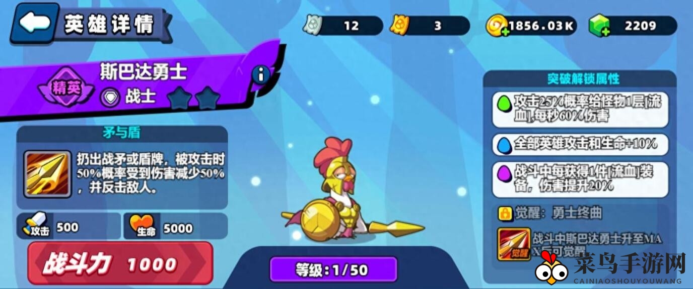 手游网倾情呈现《小鸡舰队出击》斯巴达勇士技能图鉴深度解析,更多精彩游戏资讯,敬请锁定手游网!