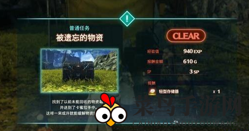 任务回报:获得940经验值、610金币、3技能点数以及轻型储存器。