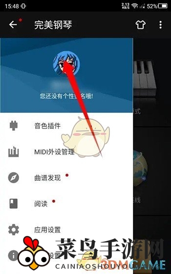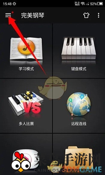 1、打开完美钢琴应用,轻点屏幕左上角的菜单图标。
