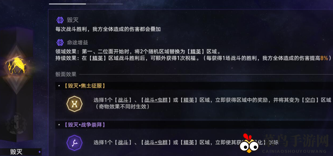 毁灭战斗节奏慢,但稳定性高,确保高几率获得祝福。