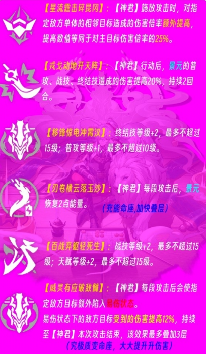 (2)2命强化景元自身,提升普攻、战技、终结技的伤害,但【神君】技能不受影响