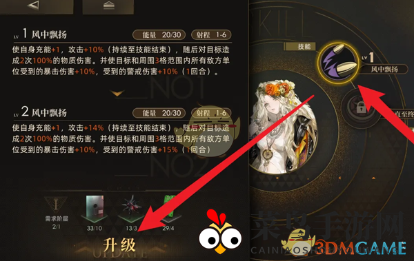 独家解读:只需轻松一点,劳拉探员技能页面的升级按钮,让她技能等级飞速提升。