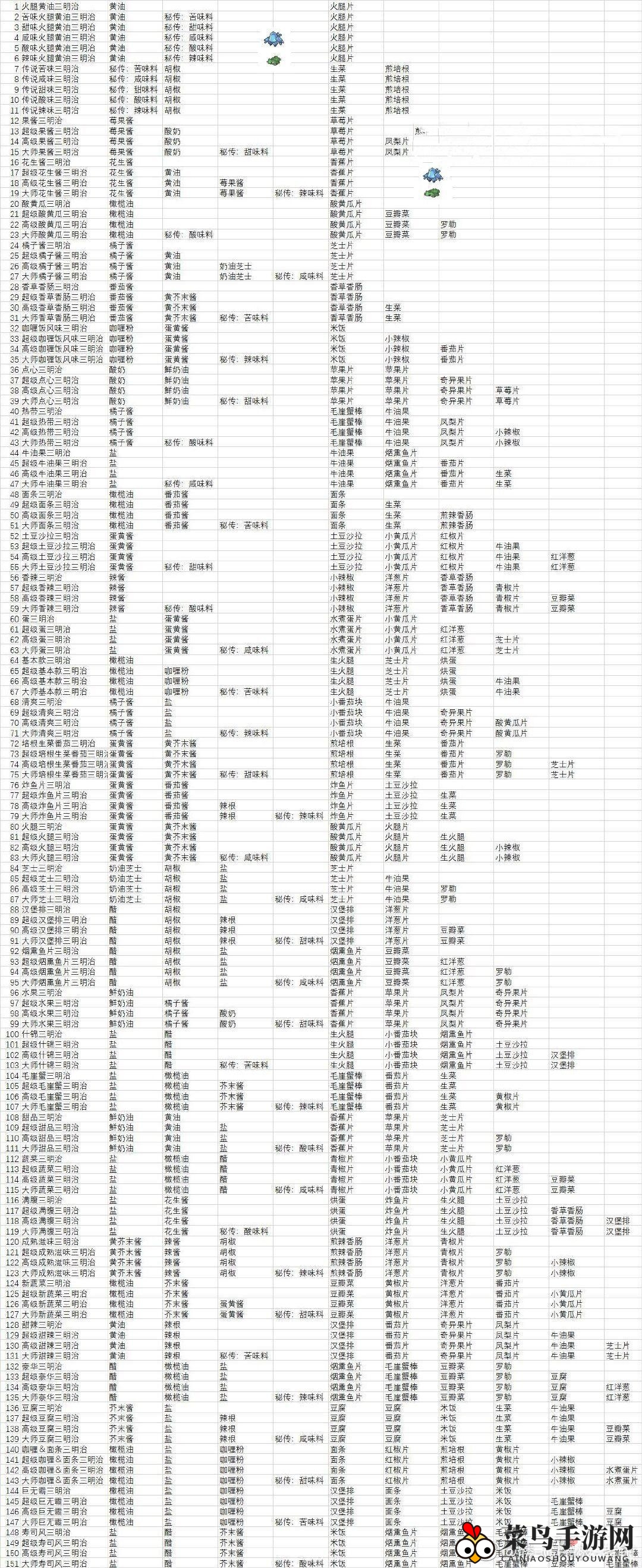 例:原毒系食谱中,面条+秘传咸味料x2,可修改为面条+秘传咸味料+秘传酸/苦/辣+1黄油或面条+秘传咸味料。