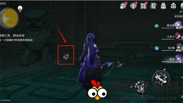 2、在石狮子旁细心寻找,你会发现倒地的雪衣静静等待你的发现。